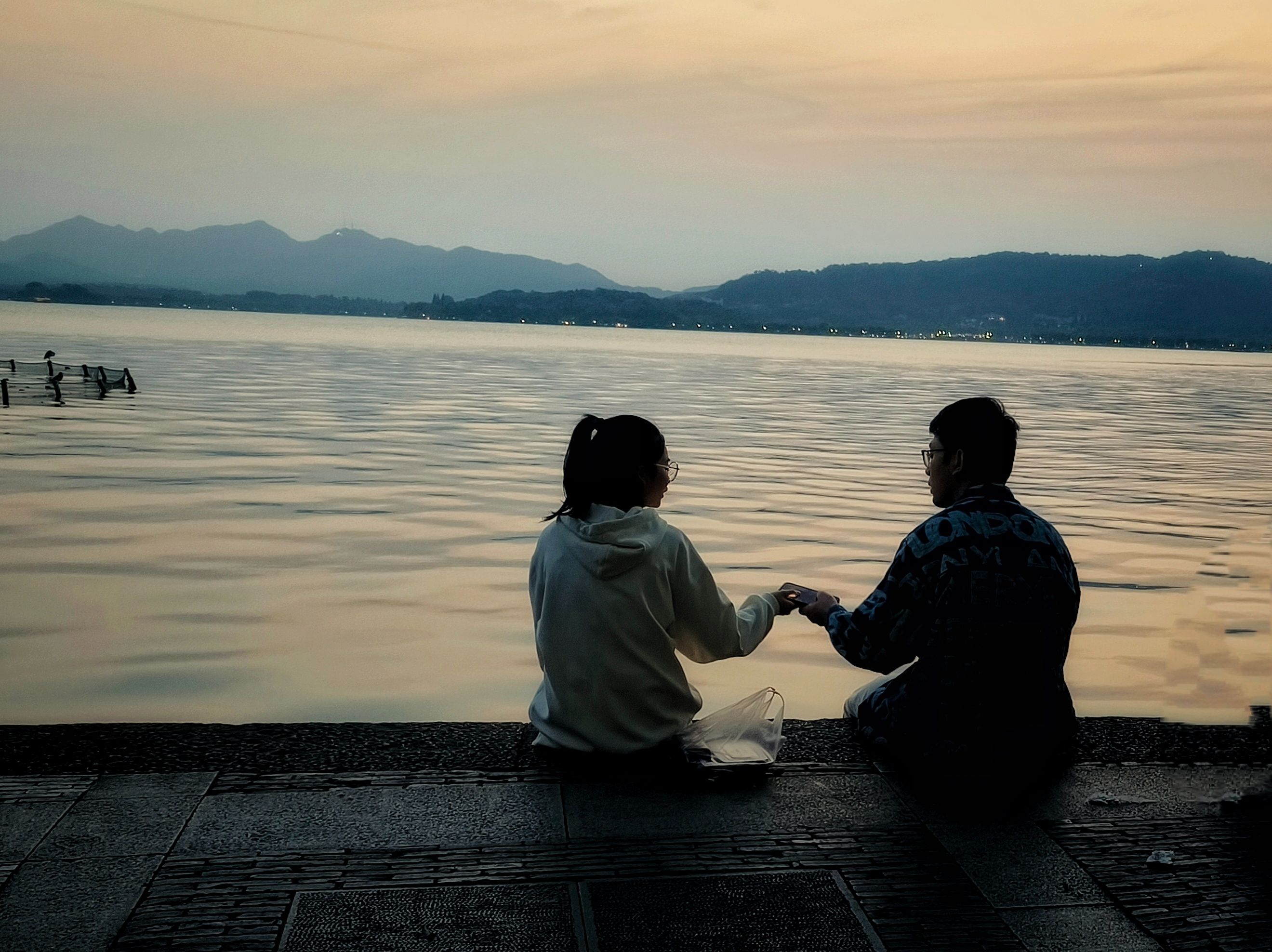 情侣赏夕阳